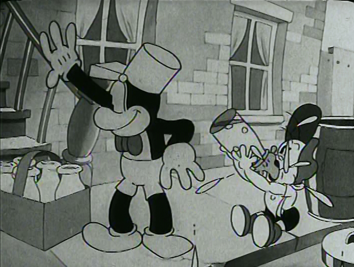 In The Milkman (1932), Flip the Frog determines a crying waif is hungry. He has an idea. He removes his glove.