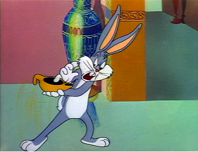 There’s a take as Bugs sees Caliph Hassen Pheffer coming for him. But the take is off-screen. You can’t see the animation.